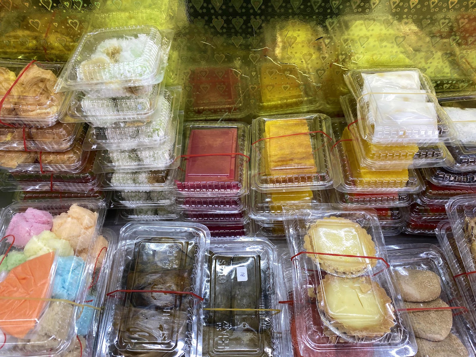 Também trouxe alguns lanches para levar para casa. Bolo de banana e creme de coco com milho. Experimentei agora e os dois são deliciosos, principalmente o último. Eles têm muitos petiscos, bem coloridos. As vezes pego alguns aleatoriamente.