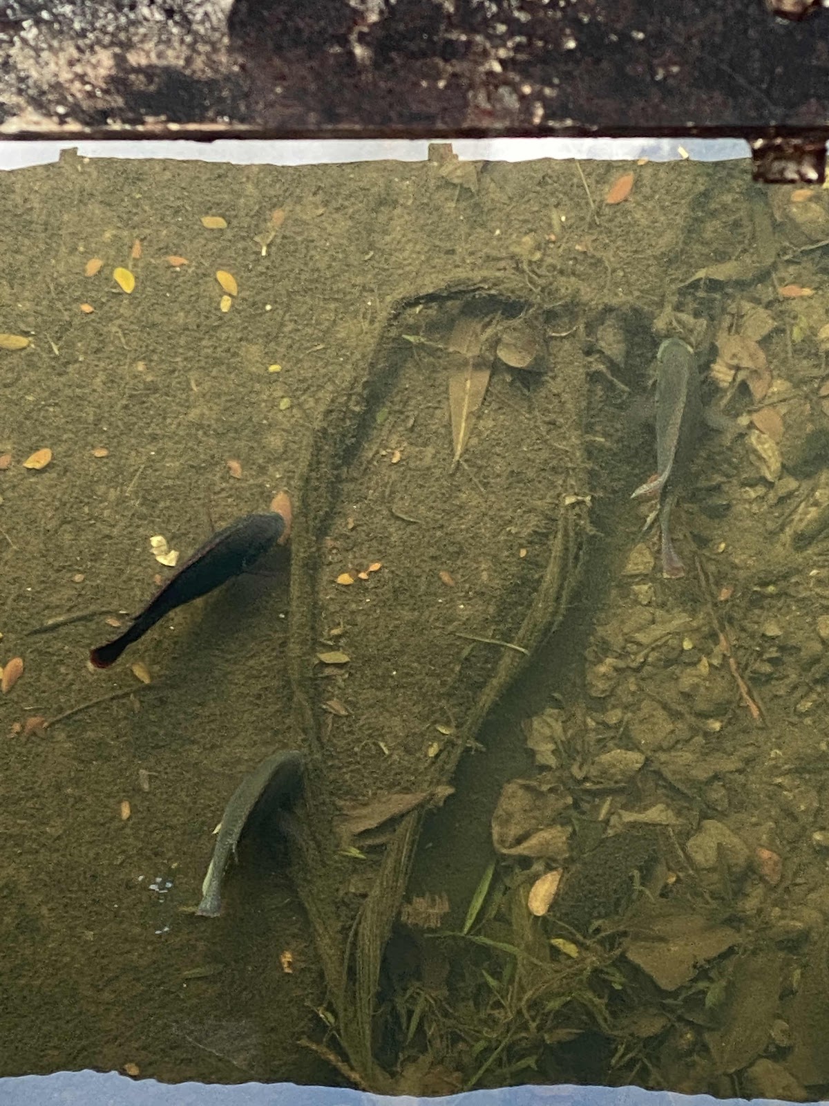 A caminho do restaurante (a três quarteirões de casa), encontrei outro Buda e vi peixes no rio Geylang.